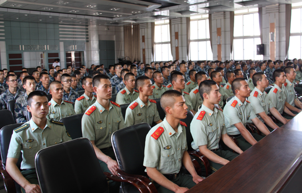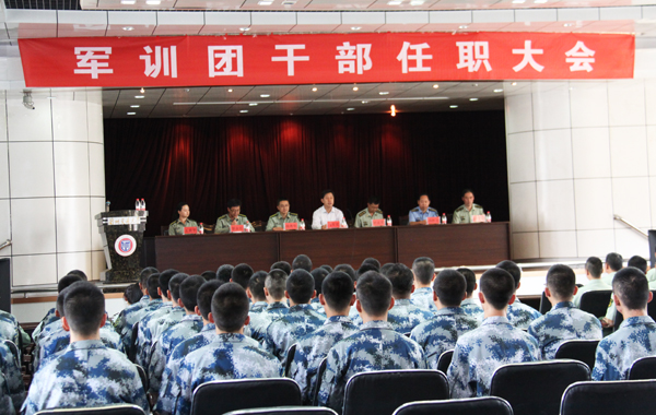 9 月5 日下午,我校2014 级大学生军训团干部任职大会在萃英厅举行,标志着我校2014 级新生军训正式开始。
