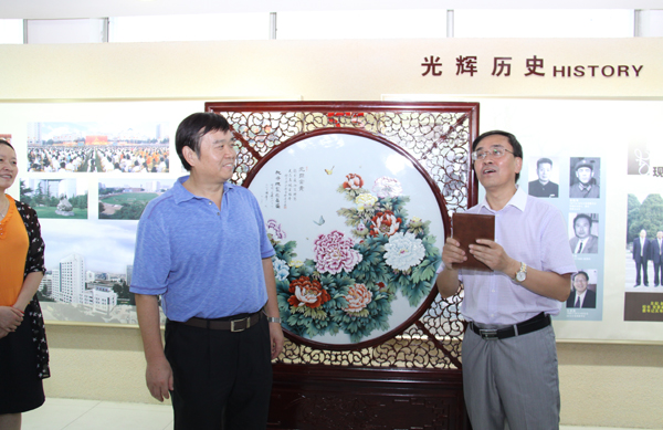 联谊会前,运80校友们还分别为学校和交通运输学院捐赠了陶瓷版画屏风,党委副书记、常务副校长李引珍出席捐赠仪式并带领校友们参观了校史馆。
