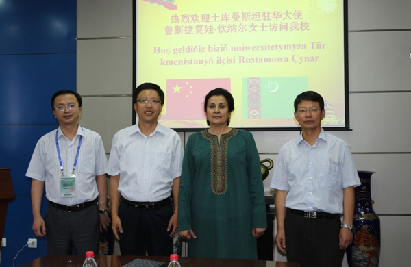 7月6日下午,土库曼斯坦驻华大使鲁斯捷莫娃•钦纳尔女士访问我校。
