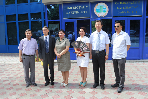 马军党副校长一行访问了哈萨克斯坦国立民族大学孔子学院和东方语言学院,并向该校东方文化展示厅赠送了具有中国文化特色的礼品。