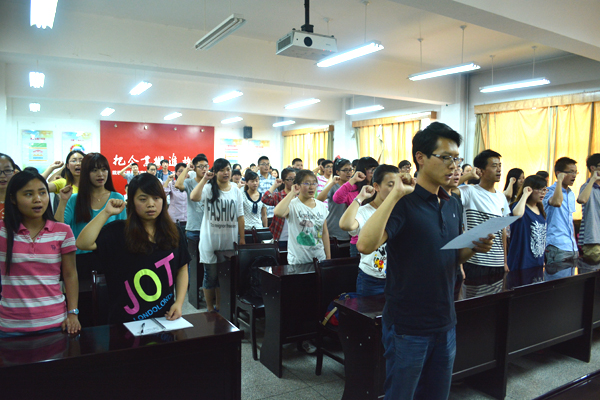 在建党93周年来临之际,经济管理学院于6月26日在学院学术厅举行了新发展党员入党宣誓仪式。学院党委相关负责人及学生各党支部书记出席,各党支部委员、全体预备党员、部分正式党员等100多人参加了大会。