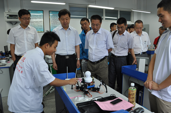 副校长马军党、中国电子学会嵌入式系统专家委员会副主任委员陆海军、在兰各高校相关专业的负责人及我校教务处、实验室管理处、校团委、国家级计算机科学与技术实验中心、电信学院、科技园等部门负责人莅临大赛现场并参观了各位同学的设计作品。