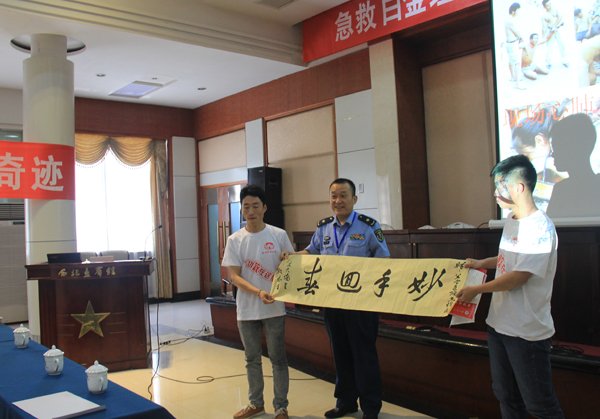 我校安全急救协会成员就急救白金理论知识向专家进行咨询,并就一些看法与专家进行了交流,还为何忠杰博士赠送了协会自编的急救理论刊物一本及书法一幅。