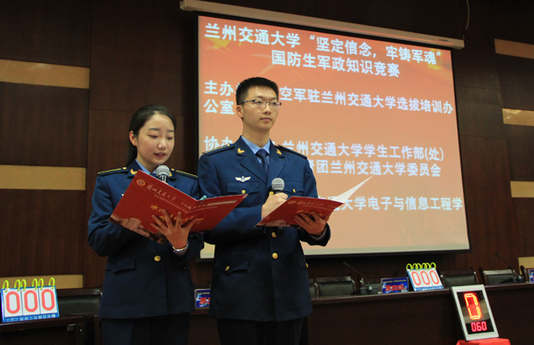 5月18日下午,由空军驻校选培办主办,学生处、校团委协办,电信学院承办的“坚定信念、牢铸军魂”国防生军政知识竞赛决赛在国际会展中心举行。