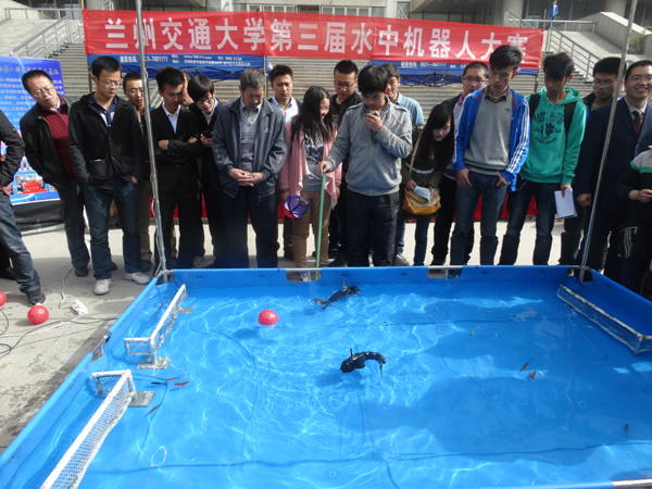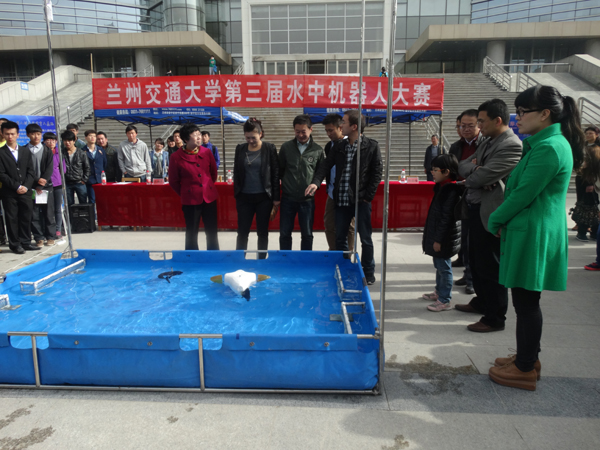 4月27日,由教务处、校团委、实验室管理处、学生处主办,机电学院承办的第三届水中机器人大赛暨2014国际水中机器人大赛选拔赛在图书馆门前和四教220教室成功举办。