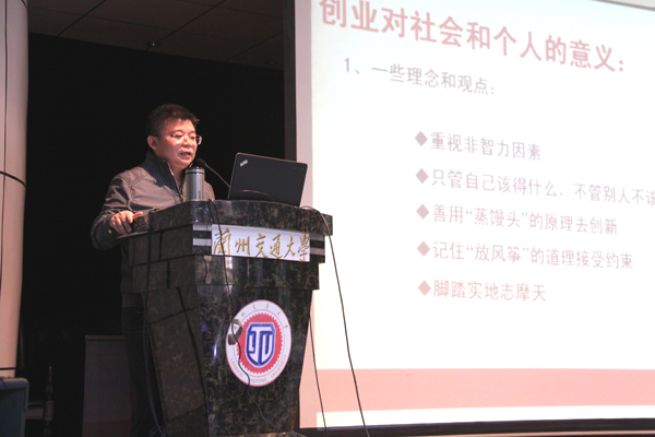 4月24日下午,由甘肃省教育厅主办、我校承办的甘肃省大学生创业大讲堂系列报告会在萃英厅举行,兰州中和投资创业集团董事长、兰州市“十大杰出青年”洪涛应邀作了题为《做一个光荣的创业者》的报告。