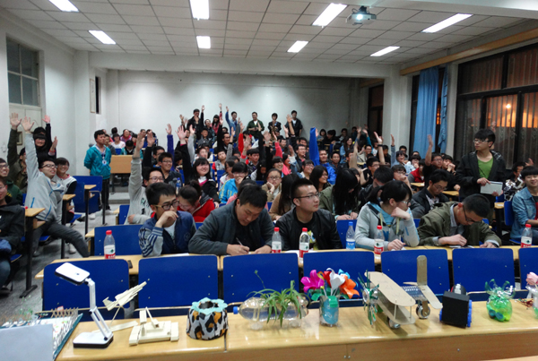 大赛于4月25日晚在八教1506教室举行,28组团队提交作品参加了比赛。参赛选手以生活中常见的简单材料为素材,用巧妙的双手做出了一个个让人眼前一亮的手工作品,得到了大家的一致赞赏。
