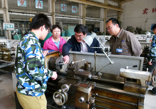 4月14日,校长助理高溥深入机电工程学院车辆12级詹天佑班金工实习现场,详细了解同学们的实践教学活动。金工实习是机电工程学院的传统实训项目,是机械类各专业学生学习机械制造的基本工艺方法。高溥深入实践教学一线,对学生们实习存在的问题进行仔细询问,认真听取学生的提问,耐心答疑并进行了现场示范。高溥希望同学们能够坚持自己对机械专业的兴趣,希望指导教师进一步提高实践教学能力,增强学生的应用能力和创新能力,为提高实践教学水平、培养高水平的应用型人才发挥积极作用。