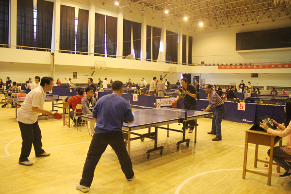 4月16日,我校第四十六届运动会教职工乒乓球混合团体赛预赛在体育馆圆满结束。全校25个分会的近300多名教职工参加了历时三天的比赛。