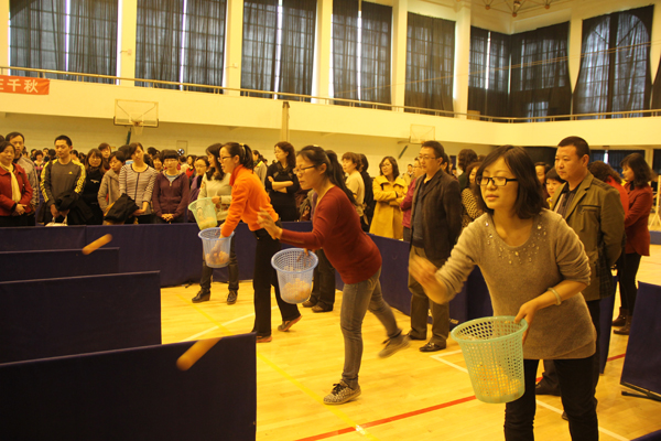 随后,26个分会300余名教职工参加了乒乓球定点“投篮”和绑腿跑穿梭接力比赛的角逐。比赛中,参赛教职工信心百倍,各展风采,赛出了友谊,赛出了风格,共同陶醉在欢声笑语之中。