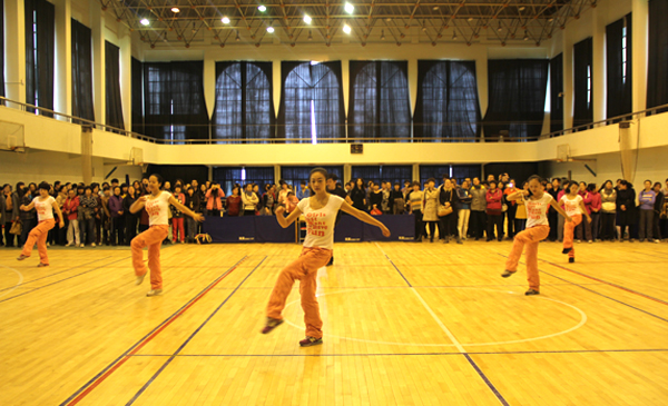 在率先举行的集体舞表演中,分别由教职工健身舞协会和体育部分会表演的健身球舞和激情排舞以优美的舞姿、精湛的表演博得了全场观众的阵阵掌声。