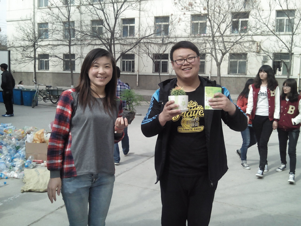本次活动分为海报宣传、流动讲解宣传、废旧物品回收、花卉兑换、花卉养殖讲解等5个环节。本次活动共收集饮料瓶、啤酒瓶9000多个,换出花卉40盆,笔15支,环保用具1套,垃圾袋5个,绿色储蓄卡若干张。