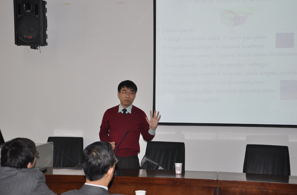 17日下午,周学松教授在运输学院学术厅用全英文作了题为《列车运行图铺画模型和算法:过去、现在和将来》的学术报告,并与到会的100余名师生进行了交流研讨。当天晚上,周学松教授还与交通工程学科部分教师进行了2个多小时的面对面交流。