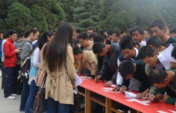 随后,同学们阅览了宣传展板,并在“传承民族文化,保护传统节日”的条幅上签名。