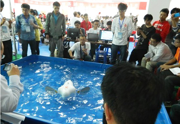 此次水中机器人项目以智能仿生机器鱼为主题,包括自主视觉组、全局视觉组、2D仿真组、自由创意组等比赛内容,涉及机械、电子、机器视觉和人工智能等领域的相关知识。比赛中,我校学子自主设计完成的仿生“安康鱼”在评委们的严格评审下战胜了来自北京大学、中国海洋大学、山东大学等队伍的参赛作品夺得自由创意组冠军。同时,在2D仿真组比赛中,经过激烈的角逐获得水球(5:5)项目季军,上述两个项目的突破表明我校学子参赛水平的持续提高。通过本次参赛,拓展了我校学生的参赛内容,更新了实践教育理念,创新了大学生人才培养模式,充分调动了参赛学子的积极性,实现了学科比赛带动实践教学、通过实践教学促进比赛的目标。同时,通过比赛参赛学生增长了见识,也展示了我校学子的良好精神风貌。