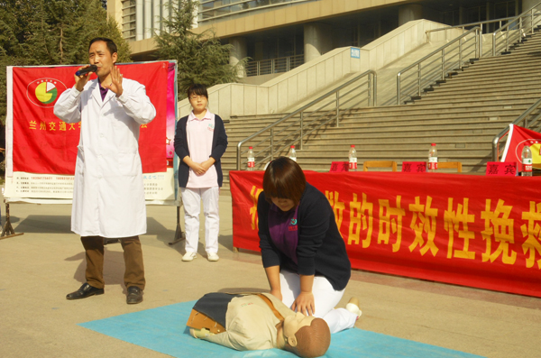 10月10日,由兰州军区总医院安宁分院、我校学生处、校团委以及校医院共同主办,安全急救协会承办的第四届“急救白金十分钟—全国自救互救日”活动在图书馆前中心广场举行。