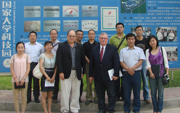 8月26日上午,美国加利福尼亚州立大学圣贝纳迪诺分校的Dr.KUNG DAVID(龚大卫博士)和Dr.ROHM TAPIE(塔皮·罗门哈斯博士)在甘肃省生产力促进中心主任张烜铭的陪同下,前来我校国家大学科技园考察交流。
