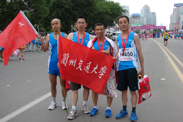 在比赛中,我校五名参赛教职工一路高举兰州交通大学的旗帜,高呼“兰州交大,向你学习;兰州交大,向你致敬;兰州交大、服务社会;兰州交大,回报社会”的口号,赢得了沿途观众的热烈掌声和欢呼声。最终他们凭借着挑战自我、超越极限、永不放弃的精神和坚强的毅力全部跑完全程。申铁山、张永谋两位老师分别以4小时7分30秒和4小时9分36秒的成绩率先跨过终点,胡菊英老师以2小时20分48秒的成绩完成了半程比赛。