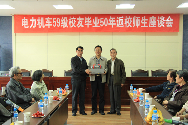 此次返校的59级校友是我校电力机车专业第一届本科生,他们在铁路事业的建设中奉献了青春,贡献了力量,其中有全国五一劳动奖章获得者,国务院政府特殊津贴的享受者,铁道部技术专家,当然还有至今坚持在铁路建设第一线默默发挥余热的技术骨干。