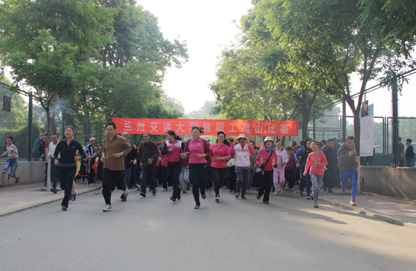 上午8:30,近三百名参加爬山比赛的教职工集结学校网球场,随着一声令下,大家迈着矫健的步伐,沿着比赛路线向终点跑去。本次爬山比赛从我校网球场出发,途经学校西门、变电所、化工厂桥等,终点为滑雪场。比赛吸引了众多老中青教职工参加,许多小孩也在大人的带领下参与其中。爬山比赛过程中,大家你追我赶,互不示弱,同时又互相加油鼓励,气氛活跃,不到二十分钟就有教职工成功抵达终点。