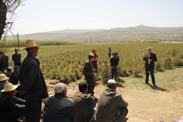 期间,校工会邀请的兰州植物园园艺师邓文钢主任为闻讯赶来学习苗木种植技术的30余名村民进行了苗木种植技能培训。邓文钢主任结合和政县当地土壤、气候情况及市场前景,为村民推荐了适合当地种植的苗木品种,并讲解了苗木种植的基本流程、操作方法、田间管理技术和注意事项等,现场传授了倒圃、平茬等技术要领。