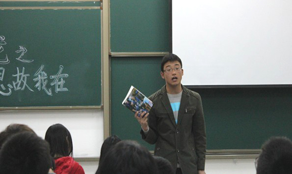 该活动一共由四个环节组成:一分钟即兴演讲;向他人推荐自己近期读过的书籍和观过的优秀励志影视;填写“青年成长文化沙龙调查表”;就有关社会热点问题如钓鱼岛问题、奢侈品反腐事件、微博舆论场、大病医保问题、叫停公路违规收费等热点话题分成小组,运用团队的智慧进行小组讨论。活动中同学们积极展示自我,热情参与思辨,相互学习交流,使得本次活动深受同学们一致好评。