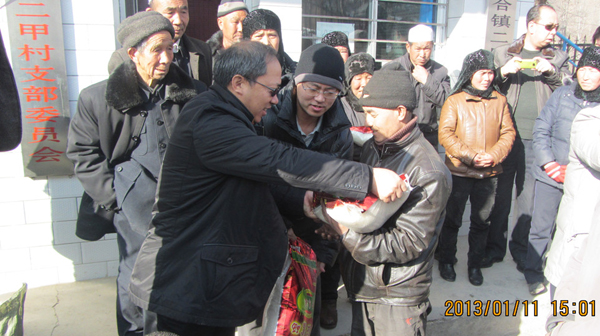 慰问小组首先来到二甲村村委会,受到了早就等候在村委会的村民们的热烈欢迎。在村委会的会议室召开的“双联”工作民主评议会议上,二甲村支部书记陈有才向村民们介绍了前来慰问的学校双联小组领导,他说,一年来的“双联”工作使二甲村的村情村貌有了很大的变化,贫困户与联系干部之间加深了感情,强化了联系,贫困户的精神面貌有了明显改善。他对本小组一年来的“双联”工作给予很高的评价,并代表二甲村和联系贫困户对联村单位一年来的“双联”工作表示感谢。