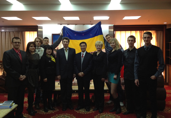 杰尼修克•伊戈尔一等秘书指出,今年是乌克兰和中国建立外交关系20周年,双方举行了首届中国和乌克兰的高校论坛,来自乌克兰高校的19位校长和14位中国高校校长参加了本次论坛,取得了良好效果。兰州交通大学与乌克兰高等院校建立了长期合作关系,并接受乌克兰留学生来校学习;兰州交通大学的合作伙伴第聂伯罗彼得罗夫斯克铁路运输大学,也接收了来自兰州交通大学的中国学生,也许兰州交通大学与乌克兰的合作伙伴在交通运输领域将创建一所新的孔子学院。乌克兰驻中国大使馆将继续加强推动和发展同中国的友好关系及发展校际合作。他希望中国与乌克兰的大学之间的合作关系继续扩大和深化,兰州交通大学与乌克兰的合作院校发展得越来越好。