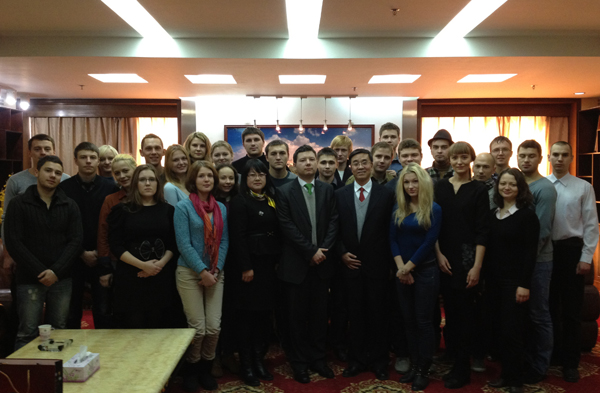 会见结束后,科兹洛夫斯基•德米特里领事和杰尼修克•伊戈尔一等秘书分别与在我校留学的白俄罗斯国籍的学生、乌克兰国籍的学生进行了座谈,详细询问了他们在我校的学习、生活情况,并前往留学生公寓楼,考察了留学生住宿等生活设施。