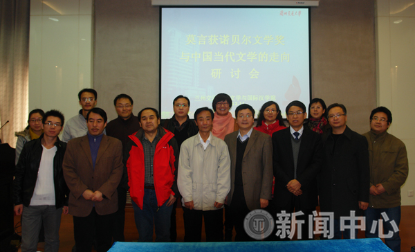 11月9日,由我校文学院主办的莫言获诺贝尔文学奖与中国当代文学的走向研讨会在国际会展中心三楼小报告厅召开,来自甘肃省作协的领导、作家、评论家,在兰部分高校的专家学者以及我校师生代表等30余人参加了研讨会。