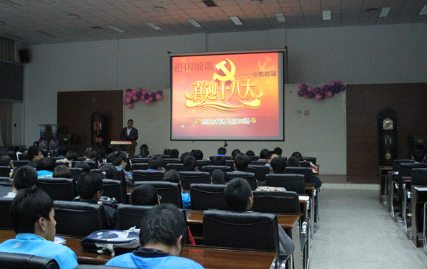 为了迎接党的十八大胜利召开,营造浓郁的校园文化氛围,10月28日,我校土木工程学院在3号实验楼多功能厅举办了“喜迎十八大”主题诗歌朗诵比赛。来自各学院的同学们用充满激情的诗歌歌颂伟大祖国,为党的十八大胜利召开献上自己的祝福。
