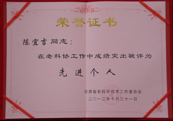 10月31日,甘肃省老科协成立三十周年庆典暨第八次会员代表大会在兰州举行,会议表彰了全省老科协系统工作先进集体和个人。我校老科协荣获先进单位,校老科协会长陈宜吉教授获先进个人。