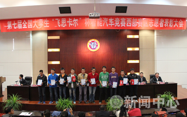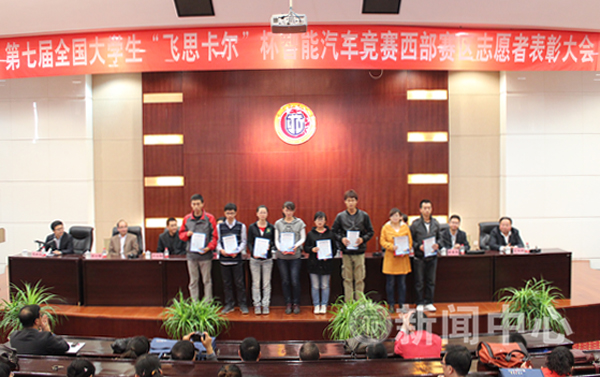 10月18日下午,我校在国际会展中心报告厅举行第七届全国大学生“飞思卡尔”杯智能汽车竞赛西部赛区志愿者表彰大会,207名参与比赛服务的志愿者荣获表彰奖励。我校教务处、学生处、校团委、实验室管理处相关负责人以及自动化学院领导出席大会并为获奖志愿者颁奖。