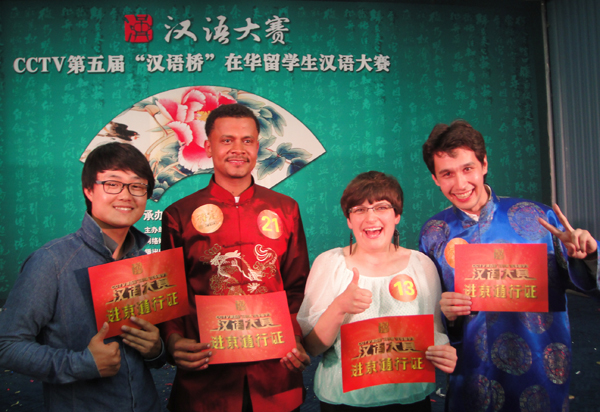 我校有7位选手参加了比赛,除朱相勋外,其它6位选手在赛场上发挥自如,表演了各自拿手的舞蹈及歌曲,尤其加纳籍留学生的高爱本同学演绎的中国民歌更是打动了台下的每一位观众。虽然他们在最后的与各位待定选手PK环节中暂时告别了舞台,但是他们会有“网络复活”的机会,大赛组委会将参考选手个人在新浪网和百度网的综合影响力,决定其是否可以直接进京参加电视决赛。