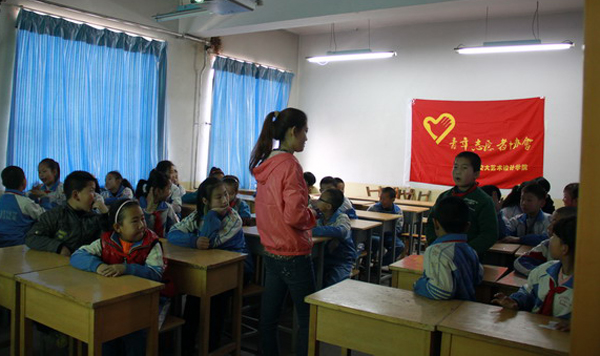 活动中,我校志愿者首先进行了自我介绍,给小朋友们讲解了校园文化以及有趣的故事等。我校艺术学院还选派两名志愿者作为指导老师,为孔家崖第二小学四年级的同学分别授课,内容涉及经典成语赏析、成语接龙比赛、名人故事讲座及开发思维训练等。期间,志愿者们深入其中,与小朋友们沟通交流,为他们传授了知识,分享了快乐。活动持续了两个多小时,同学们的参与性极高,现场气氛和谐友爱,取得了良好效果。