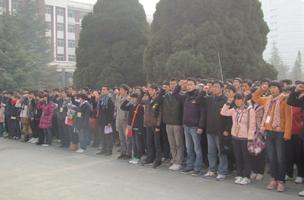 为迎接12•5国际志愿者日,弘扬志愿精神,传播志愿文化,12月5日,由校团委、校青年志愿者协会主办的青年志愿者宣誓仪式在图书馆前举行,全校500余名大学生志愿者代表参加仪式并在青年志愿者旗帜下庄严宣誓。