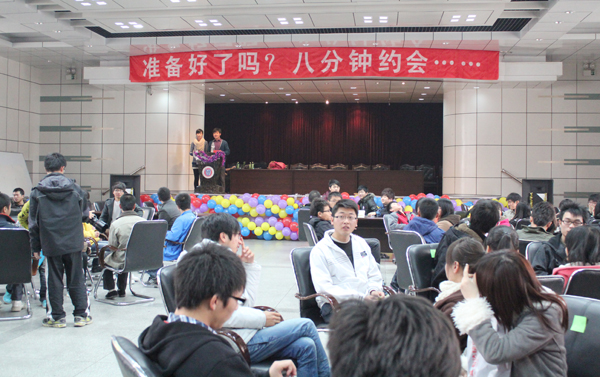 来自西北师范大学、甘肃农业大学、甘肃政法大学等高校心理社团的大学生和我校学子在萃英厅参加了轻松愉快的“八分钟约会”。通过交谈和游戏两个环节,增强了同学们人际交往的主动意识。