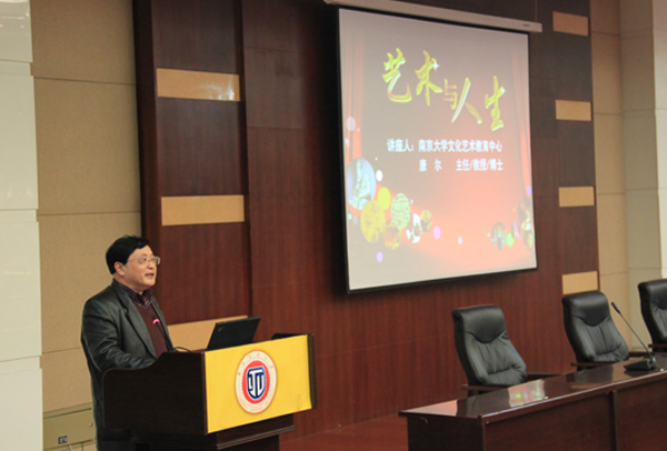 11月2日上午,中央电视台“百家讲坛”栏目特约主讲人、南京大学文化艺术教育中心主任康尔教授应邀来校讲学,在国际会展中心为我校师生做了以《艺术与人生》为题的精彩讲座。