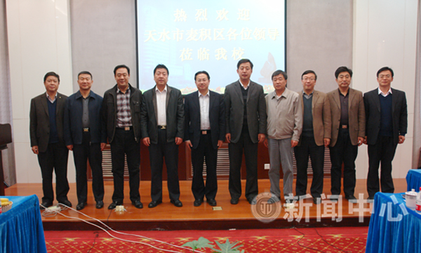 11月4日,天水市麦积区区长何东,副区长邵长峰、王彦军、徐尚峰等一行来校交流。