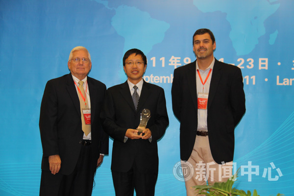 杨子江副校长、爱德华•邱奇分别在开幕式上致辞,对年会的召开表示祝贺。爱德华•邱奇与埃瑞克•强森为我校协办本次年会表示感谢,并共同为我校颁发了纪念品。