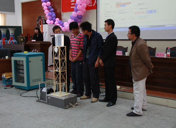 杨子江副校长在讲话中充分肯定了本次活动的重要意义,对同学们的参与热情表示肯定与赞赏,对指导教师和本次活动的承办单位土木工程学院表示慰问。他指出,结构设计大赛作为一项专业理论和实践结合的最紧密的活动,越来越得到全国设立相关专业院校的重视,越来越多的院校参与其中,结构设计大赛逐渐形成了区域性和全国级的比赛规模。我校曾经四次派队参加全国大学生结构设计竞赛,并取得非常理想的成绩,今年我们将派队参加在东南大学举行的全国第五届大学生结构设计大赛,希望同学们能取得更好的成绩,为学校争光。