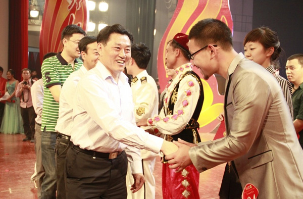 经过紧张的比赛,陈怀民、肖璐、王小龙、海米提、王生莹、杨博、马云凯、徐畅、胥美亚、胡雪帅十名选手入围第二十届“校园十佳歌手”。其中,陈怀民夺得桂冠,肖璐获得第二,王小龙获得第三。赛后,与会领导为选手颁发荣誉证书并合影留念。