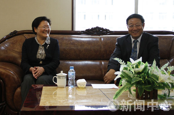 报告会前,我校党委书记俞建宁、校长任恩恩、副校长刘振奎会见了郑晓静一行并进行了简短的座谈。