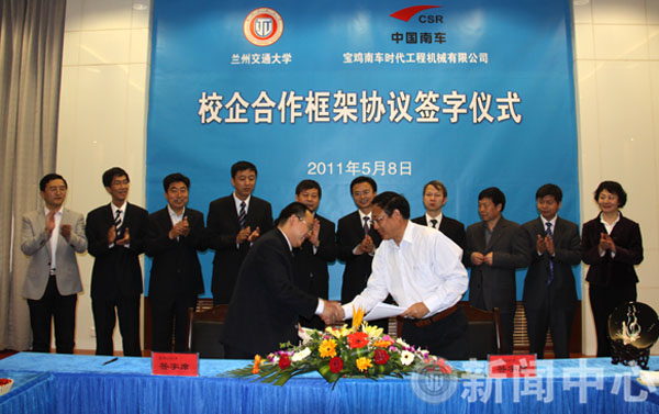 5月8日,我校与宝鸡南车时代工程机械有限公司在国际会展中心三楼小报告厅签订了合作框架协议书。