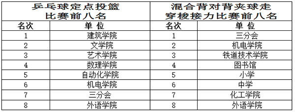 附:乒乓球定点投篮和混合背对背夹球走穿梭接力比赛成绩