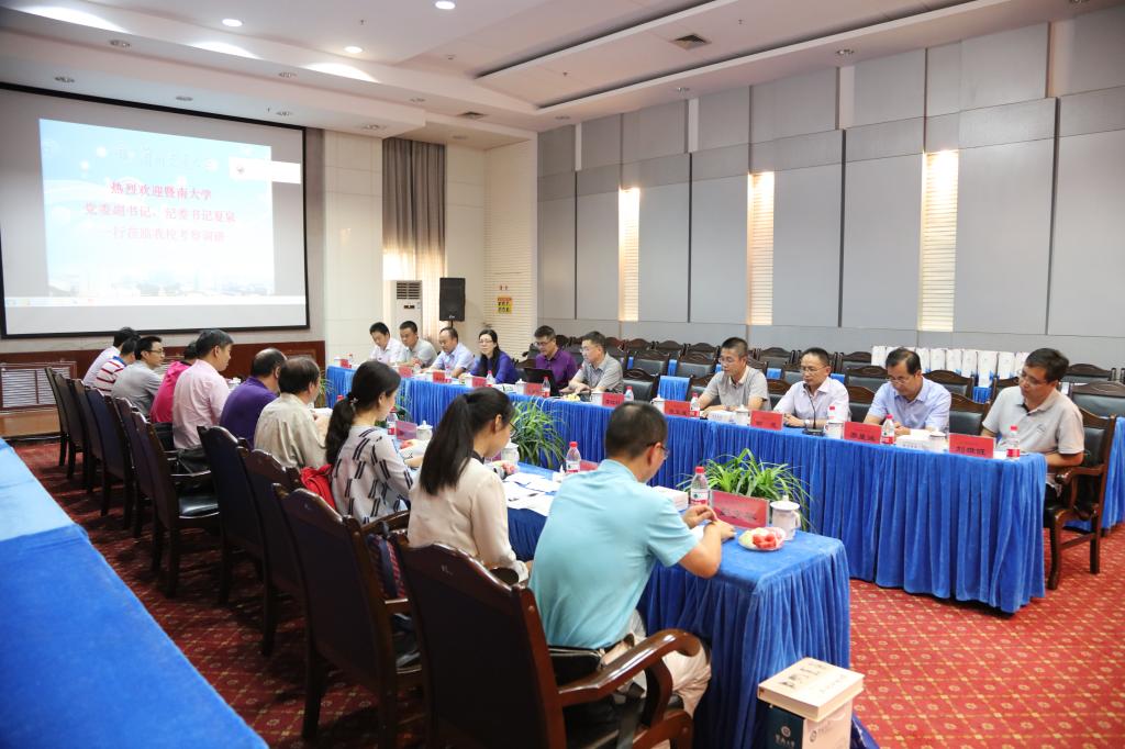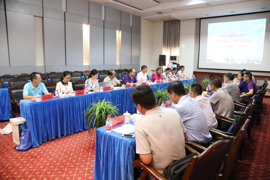 夏泉副书记一行听取了李引珍副书记关于我校历史沿革、人才培养、科学研究、学科学位、办学特色和思想政治工作等方面的工作介绍,以及马克思主义学院关于思想政治理论课建设情况的介绍。夏泉副书记就暨南大学的发展历史、办学特色、学科建设也做了介绍。