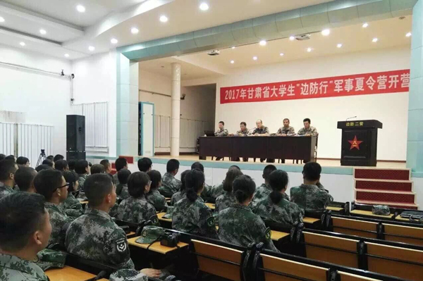 在中国人民解放军建军90周年来临之际,为培养大学生边防意识与国防观念,增强民族精神与爱国情怀,激发学习动力与报国志向,军地联合推进大学生国防教育工作,7月17日,由省军区、省教育厅共同组织的2017年甘肃省大学生“边防行”军事夏令营活动在中蒙边境某部边防营正式开营,通过进军营、走边防、练技能等形式,让大学生们零距离感受边防生活。包括我校在内的省内10所高校近百名大学生参加了此次为期一周的夏令营活动,我校“国防教育团”7名学生代表组队参加了活动。