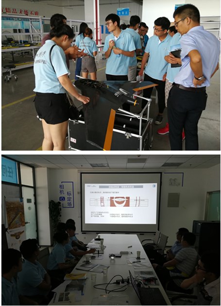 8月10日,实践团师生一行来到中海达测绘仪器有限公司天津无人机基地,与基地工作人员开展了以“新起点、新征程、智绘2017”为主题的交流会。基地产品经理为同学们详细介绍了中海达“Fly U5R差分无人机系统”及“旋翼无人机倾斜摄影系统”的航测作业方法,同学们根据所学的摄影测量相关知识,不时的提出问题与工作人员交流探讨,并向他们了解了无人机产业状况及需求,交流会气氛融洽积极。会后,实践团成员还前往中海达无人机制造中心继续参观交流,在无人机生产装配车间里,同学们了解了无人机生产线的各个环节,在生产负责人的细致讲解中强化了专业知识,同时培养了更加浓厚的专业兴趣,坚定了同学们学的学好专业课和找到好工作的信心。