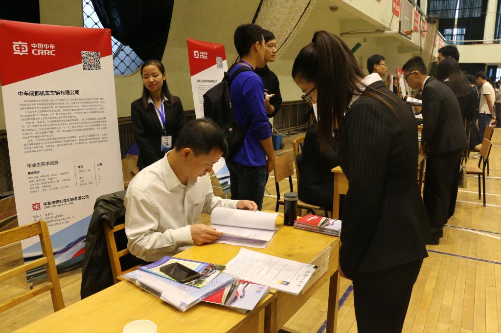 9月10日,中国中车股份有限公司接收2018届毕业生校园招聘会在我校体育馆举行。包括青岛四方机车车辆股份有限公司、中车唐山机车车辆有限公司、中车株洲电力研究所、兰州机车有限公司等38家用人单位参加此次招聘会,提供就业岗位2610个,吸引了我校2000多名2018届毕业生参加,涉及机械类、电气类、材料类、电子信息类、管理类等专业。