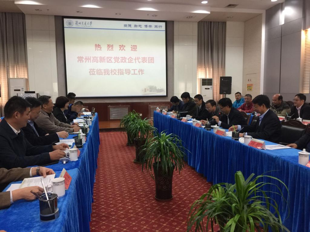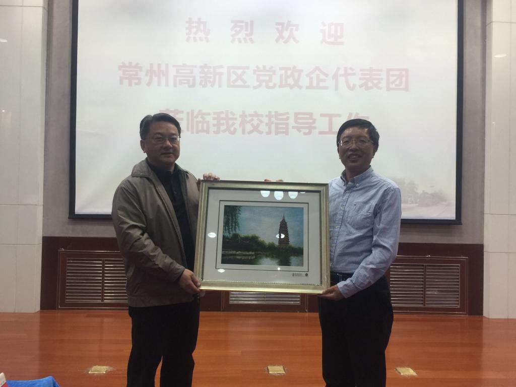 10月12日上午,常州高新区党政企代表团一行来访我校,在学校国际会展中心举行了产学研交流座谈会。